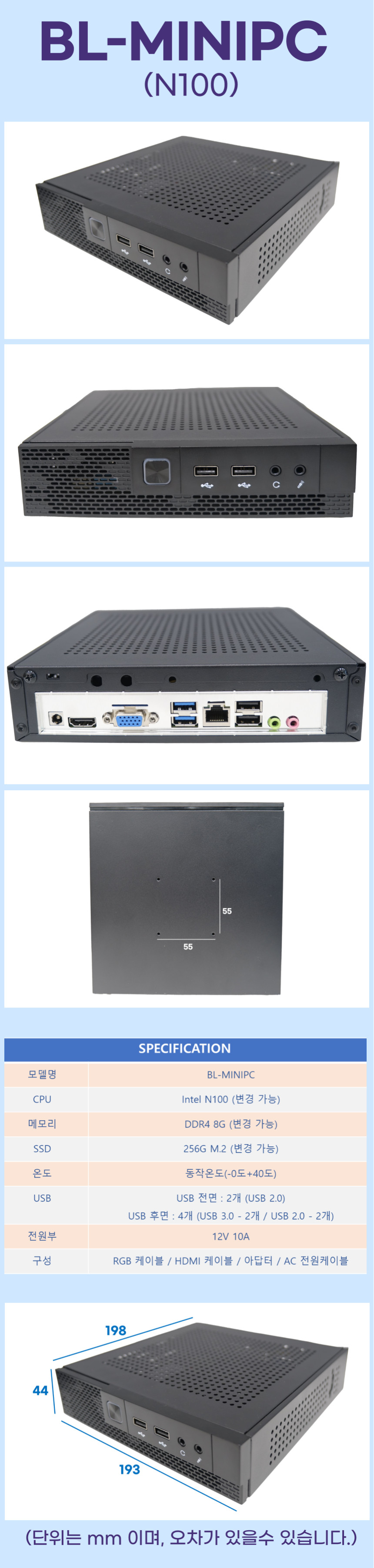 BL-MINIPC (N100) 페이지 정보 작성자 최고관리자 댓글 0건 조회 123회 작성일 25-05-12 14:51 목록 답변 본문 모델명 BL-MINIPC CPU N100 RAM 8G (변경가능) SSD 256G (변경가능) 전원부 12V 10A 구성 아답터 / AC 전원케이블 제품설명 이전글BL-MINIPC (4세대 i5 4300U) 25.05.12 다음글BL RPC-670A (12~14th) 25.09.16